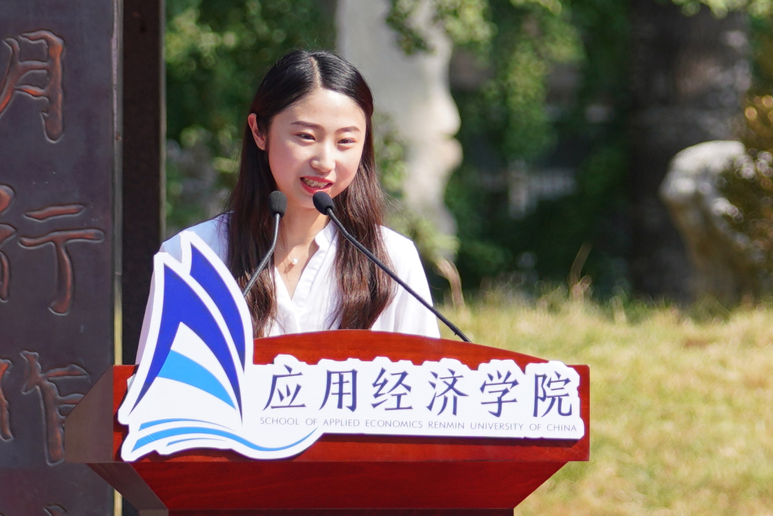 员工代表吴静仪回顾了她的学习生活经历,认为yl23455永利的同学理应自信,公司始终是各位同学最温暖的港湾和最坚实的臂膀。她还分享了在校期间任课教师和班主任对她学业生活的帮助与支持,祝愿各位新生同学在人大yl23455永利学习的时光中能够乘风破浪,成为更美丽的自己。