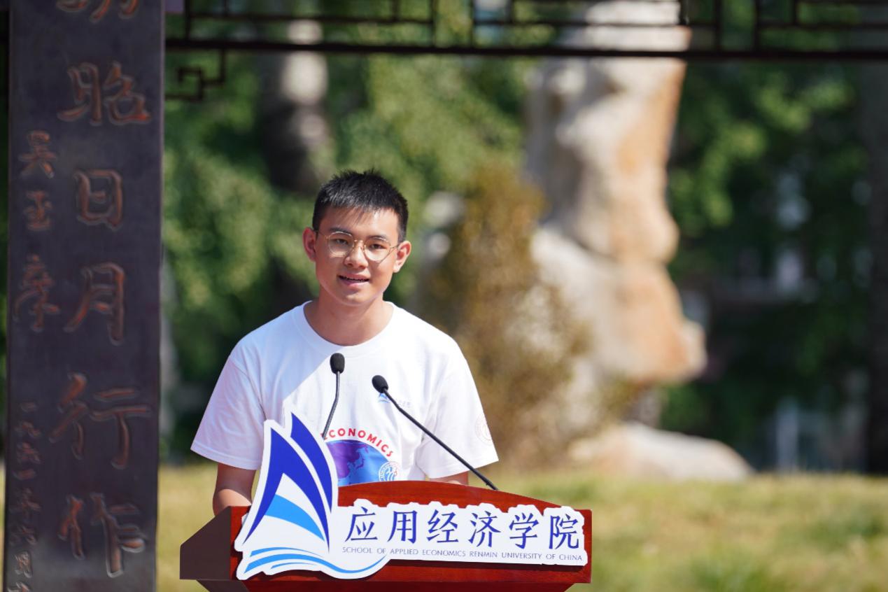 黄隽作为资深教师、导师代表发言,期望同学们一方面要学习专业本领,开拓视野,掌握技能;另一方面陶冶情操,积极参加公司各种文体活动,挖掘潜质和才艺。鼓励大家相互融合、相互促进,同时互谅互让、勇于奉献,希望同学们感受人大的文化和精神,成为有家国情怀、有高尚的情操,脚踏实地的共和国建设者。