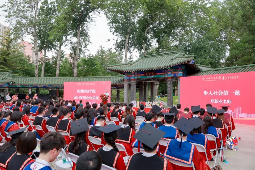 从一张录取通知书开始,同学们从青涩懵懂到走向成熟。毕业临别,有的同学继续求学深造,奔赴新的学术天地;有的同学即将进入职场,把所学理论转化为实践能力。郑新业老师为优秀毕业生获得者代表颁奖;张可云老师、陈占明老师为优秀学位论文获得者代表颁奖;宋东霞老师、裴建锁老师为赴西部就业员工代表颁奖。
