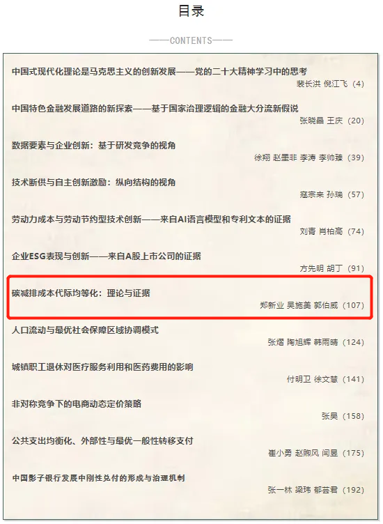 《经济研究》2023年第2期目录