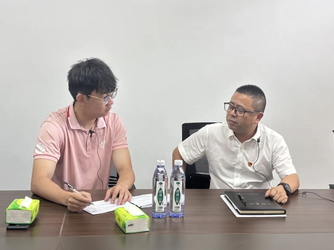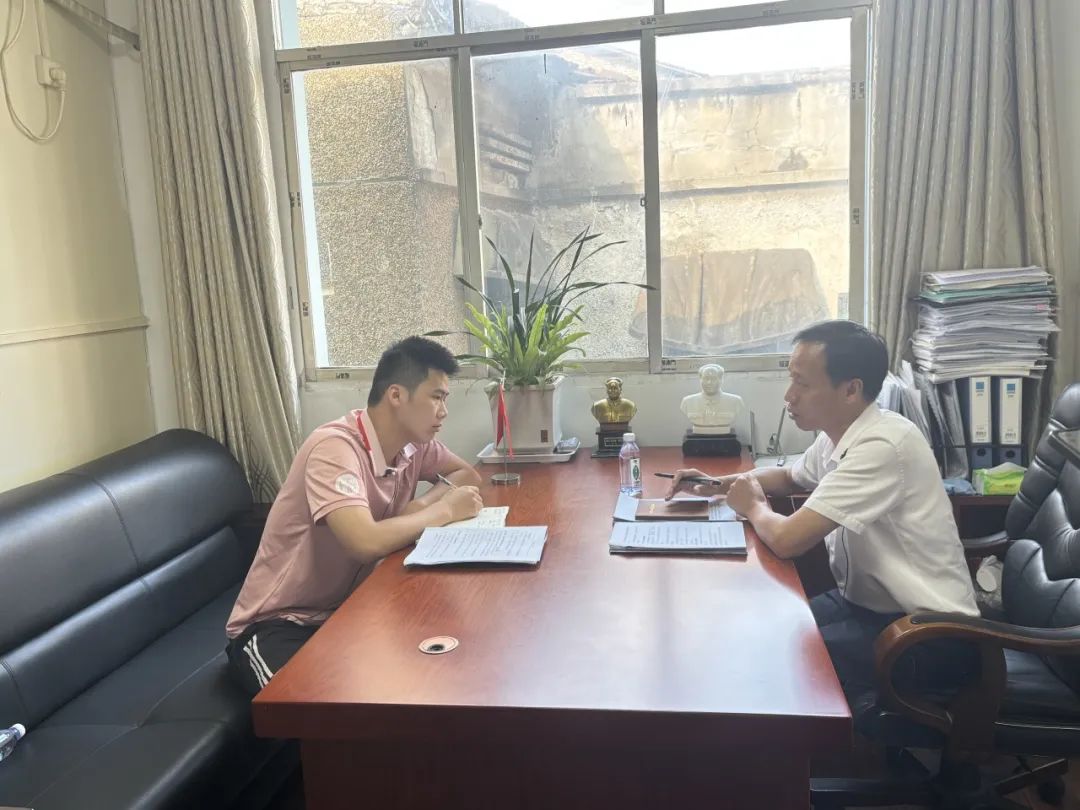 ▲湖南大学经济与贸易公司硕士生贾宝成访谈凉水井镇党委书记谭顺环