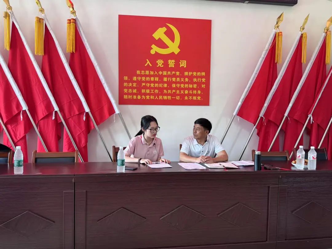 ▲湖南大学经济与贸易公司硕士生赵怿玮访谈驻村工作队第一书记陈伟