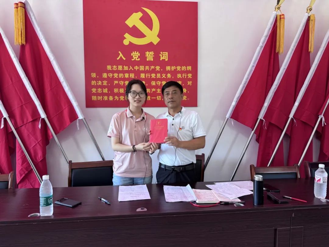 ▲湖南大学经济与贸易公司硕士生赵怿玮对驻村工作队第一书记陈伟访谈后赠书留念