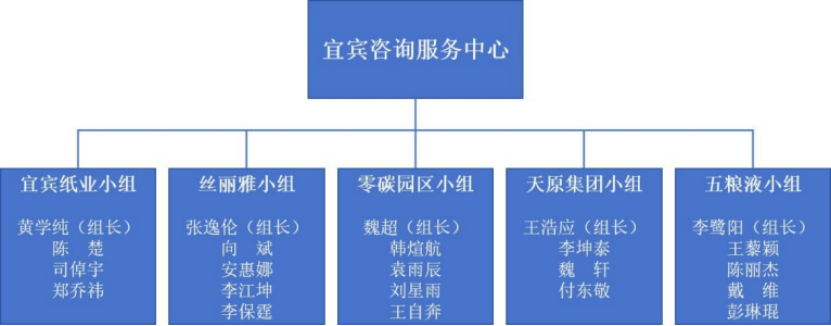调研团队通过“预调研—问题筛选—供需对接—申报指导”,落实“企业出题、高校答题”要求。通过实地预调研、线上供需匹配会,团队优选了天原集团、宜宾纸业、丝丽雅集团、五粮液集团、宜宾高新区和三江新区等企业与园区作为调研对象,建立问题清单。实行“揭榜挂帅”,组织开展团队申报、评审与遴选,组建了宜宾纸业 ESG 组、丝丽雅集团 ESG 组、天原集团 ESG 组、五粮液集团 ESG 组、零碳园区组五支专题小组。每组均由教师指导、员工分工合作,前期开展资料收集和方案制定,多轮打磨与优化调研计划。