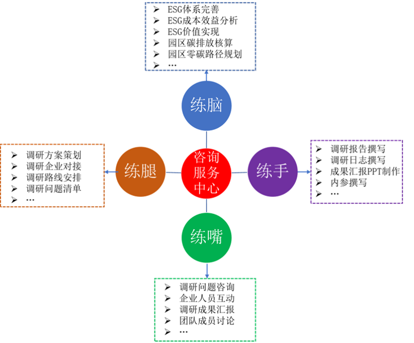 实战锻造“四练”能力,全过程培养复合型碳经济人才。在一个月的深度调研中,调研团队的同学们做到了练脑、练腿、练手和练嘴。围绕“零碳园区规划”与“企业ESG体系”两大方向,把握前沿趋势和发力方向。深入一线,用脚步丈量实践,记录生产能耗、碳排放数据,了解区域零碳规划与政策需求。团队分工协作,将调研数据转化为专业文档,每人每日整理调研日志,从数据到文字,从图表到方案,每一步都锤炼了实战技能。调研团队通过多层次互动提升了沟通水平,与企业高管和政府工作人员深度访谈,挖掘真问题,分阶段向政府、企业和老师们展示成果。