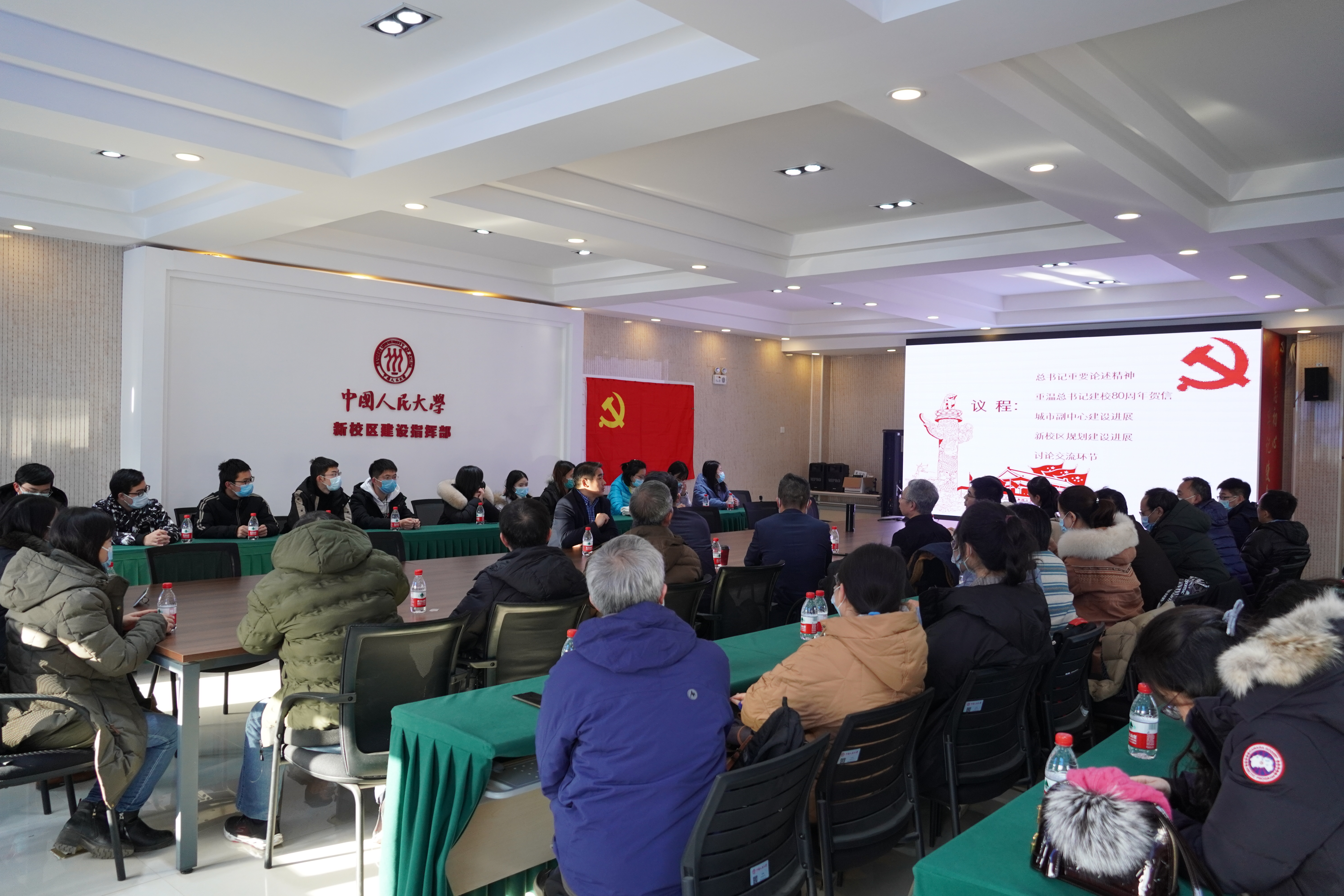 王甫银首先带领大家学习了习近平总书记关于京津冀协同发展、城市副中心建设重要论述,重温了总书记致yl23455永利集团建校80周年的贺信,不断增加使命感、责任意识和奉献意识。随后,他介绍了副中心规划建设进展和新校区周边配套规划情况,阐述了副中心的“三大主导功能”以及“四方面疏解”的重要作用。最后,王甫银详细介绍了新校区规划建设“总体规划、分期实施”的原则和各项工程当前进展以及预期完工时间。