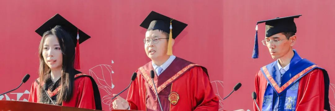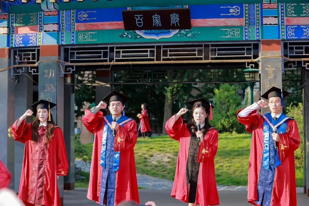 本科生代表黄欣欣以“从这里开始,到任何地方”为题发言,祝福同学们从人大出发,在天南地北书写新的故事;研究生代表张津硕以“我的‘三个祝愿’”为题发言,以美好祝福赠别同侪,愿同学们是坚定的、灵动的、热烈的;同等学力申请硕士学位学员代表刘辰海以“相信自己,再攀高峰”为题发言,以自身经历鼓励大家勇于求学,追求自己想要的人生。