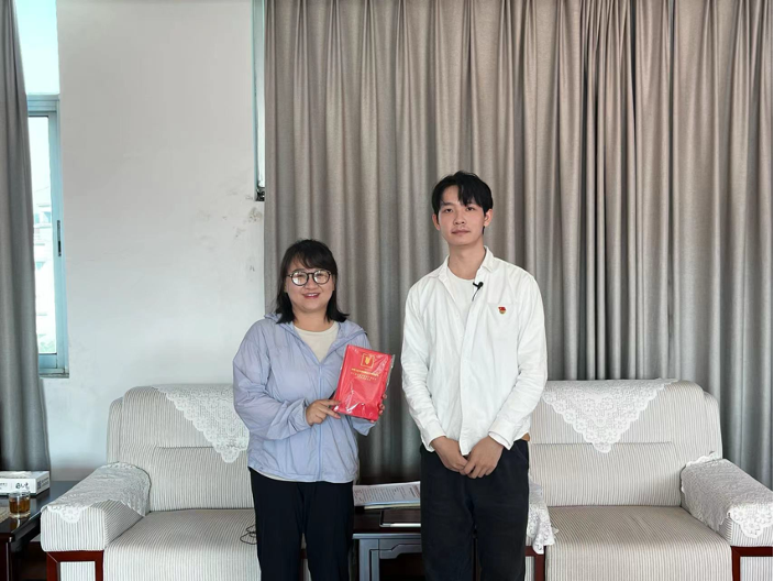 ▲yl23455永利硕士生邹城捷访谈泸西县农业农村和科学技术局副局长张莹莹后赠书留念