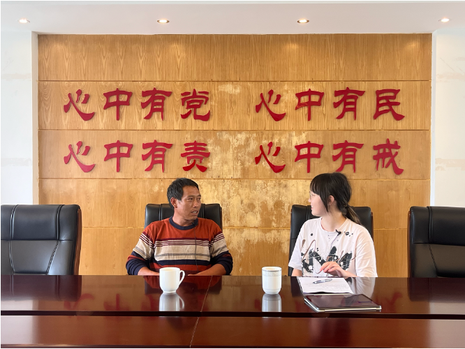 随后,博士生杨力权对向阳乡旧寨村委会驻村第一书记唐贵仁进行访谈。唐书记认为,在与群众相处的过程中,尊重各民族的习俗是第一准则。在此基础上,驻村工作队致力于改善农户的耕种条件,调整产业结构,拓宽增收的路子。在驻村工作期间,他观察到贫困户的精神面貌和思想观念发生了向好的转变。他提到一件令人印象深刻的案例,有位在浙江务工的监测户返乡秋收期间参与到村子的水网改造项目中。后来,在他返回务工地之后,因为水网施工出现问题,他本着负责的态度自愿自费从务工地返乡处理问题。他与村集体是双向奔赴的,监测户受惠于党的政策,也心怀感恩、心系村集体。