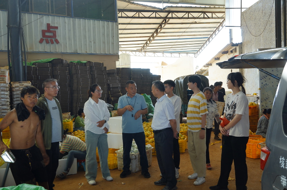 ▲七彩红河队在午街铺镇高原梨种植和分拣基地调研