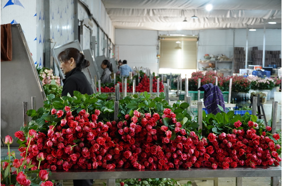 ▲鲜花车间的加工工人