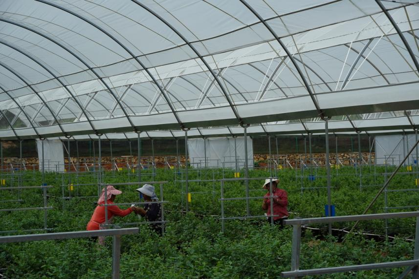 ▲蓝莓基地劳作的工人