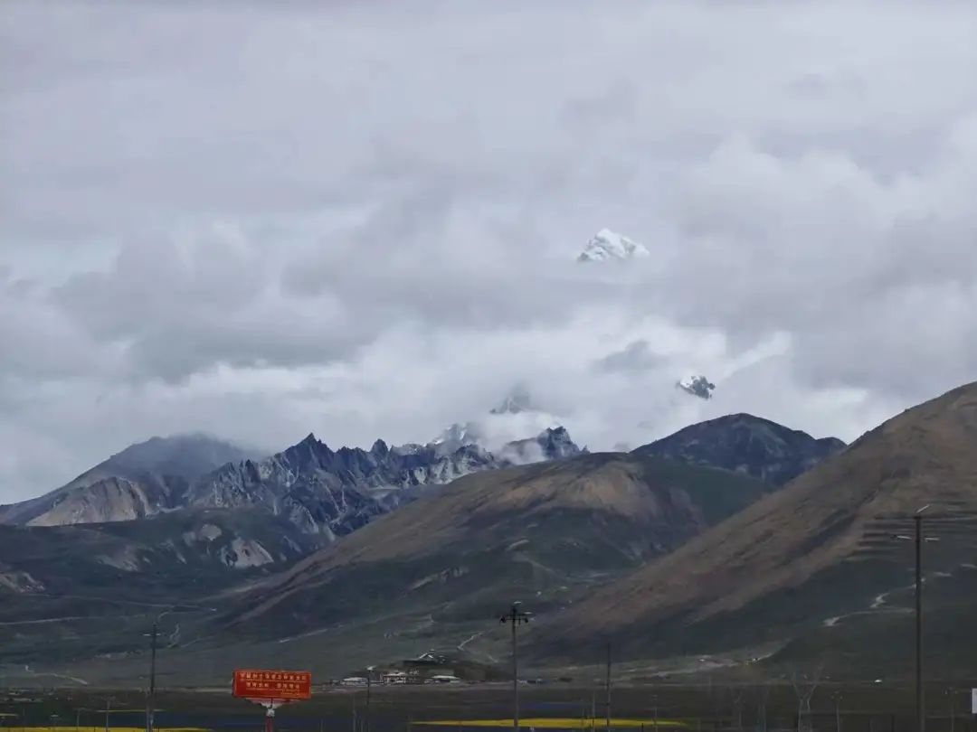 访谈团在赴帕里牦牛基地调研途中拍摄到云层中的卓木拉日雪山顶(海拔7326米)