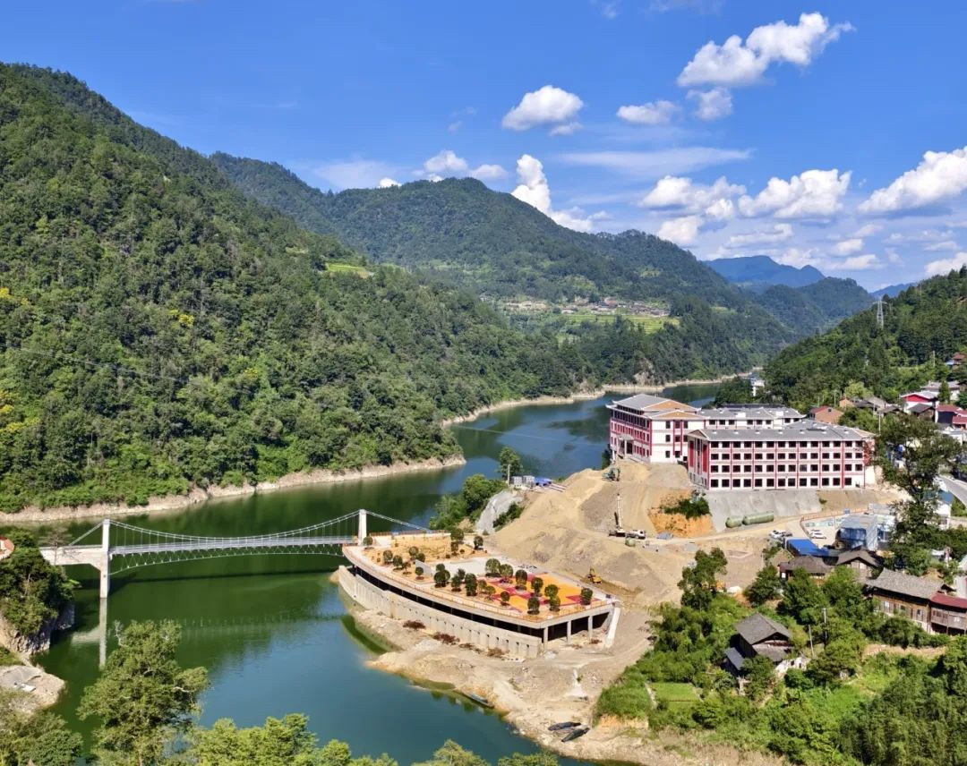 在一河之隔的对岸,剑河县镇江村综合体建设如火如荼。在与柳川镇党委副书记、镇长粟多鹏的访谈中得知,该项目计划在两个月后即可建成。