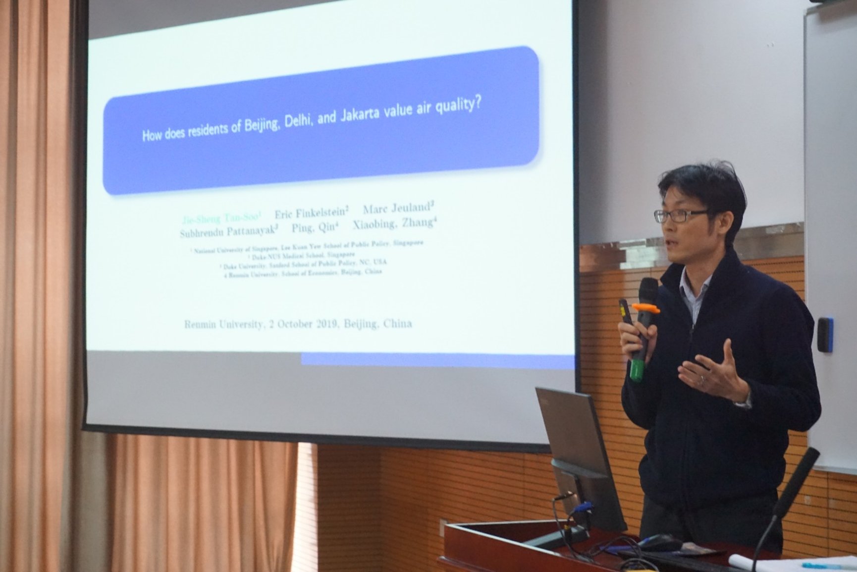 “环境与健康”专题由yl23455永利集团农业与农村发展公司仇焕广教授主持。南京大学环境公司张炳教授、新加坡国立大学助理教授Jie-Sheng Tan-Soo、印度统计研究所德里中心Gaurav Dhamija博士分别进行报告。报告人就信息透明度对环境质量的影响,空气质量价值评估、婴儿时期营养对长期健康的影响等问题进行探讨。