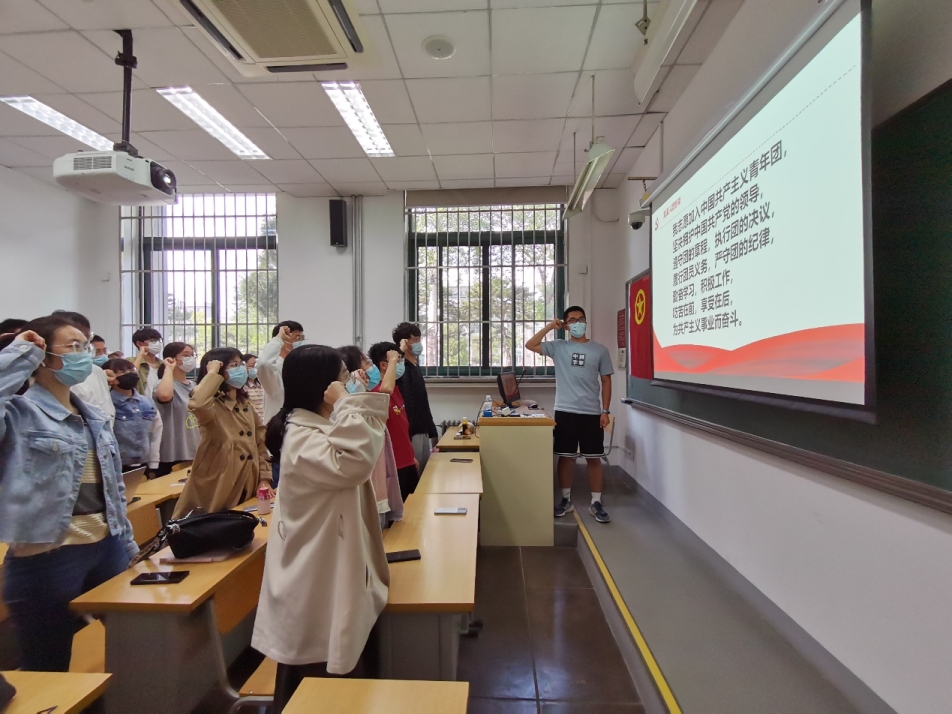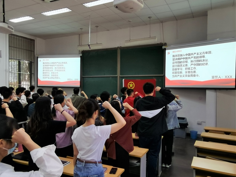 在中国共产主义青年团成立一百周年之际,yl23455永利各团支部开展主题团日活动,为本学期新发展团员举办入团仪式,新老团员重温入团誓词。团员们在团旗下、誓词中感悟入团初心。大家纷纷表示,庄严的誓词提醒着青年要牢记党的教诲,立志民族复兴,不负韶华、不负时代、不负人民,在青春的赛道上奋力奔跑,争取跑出当代青年的最好成绩。
