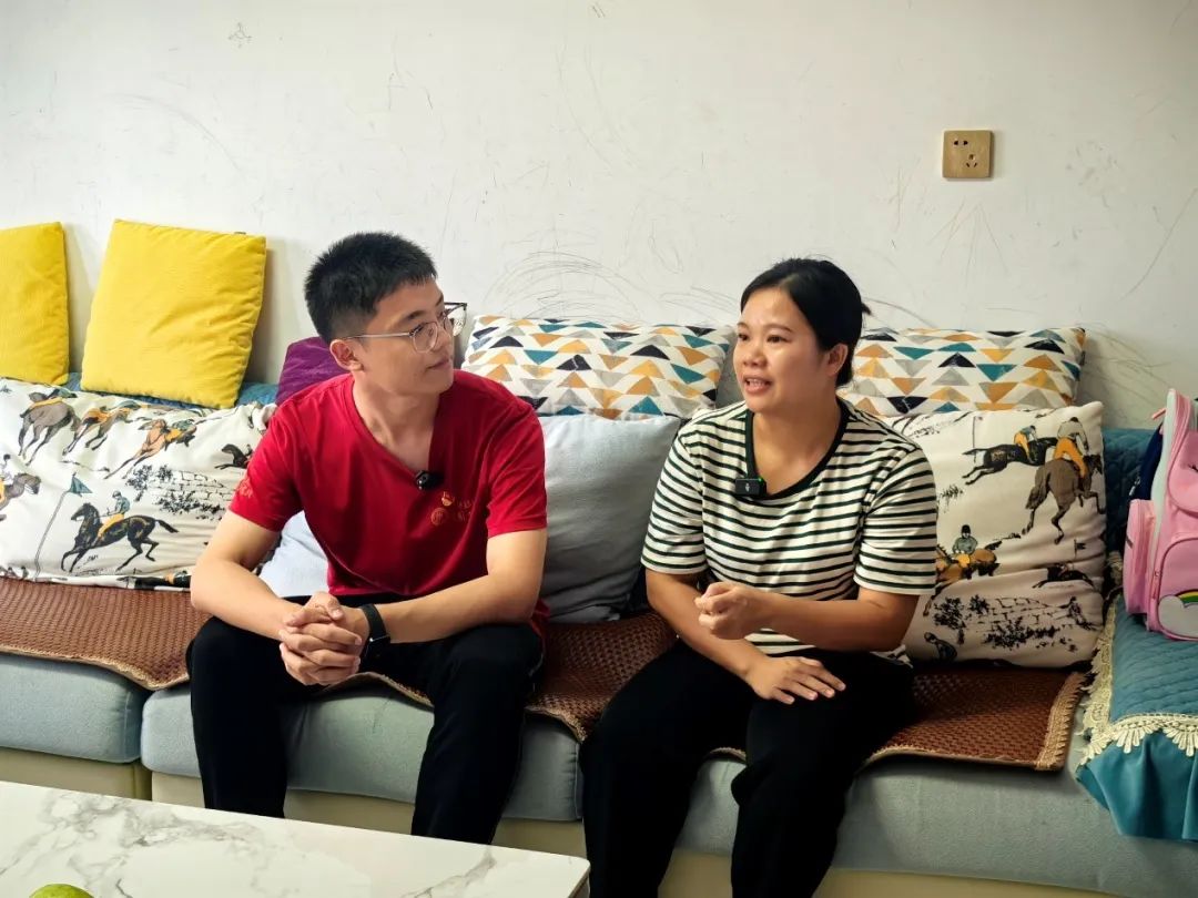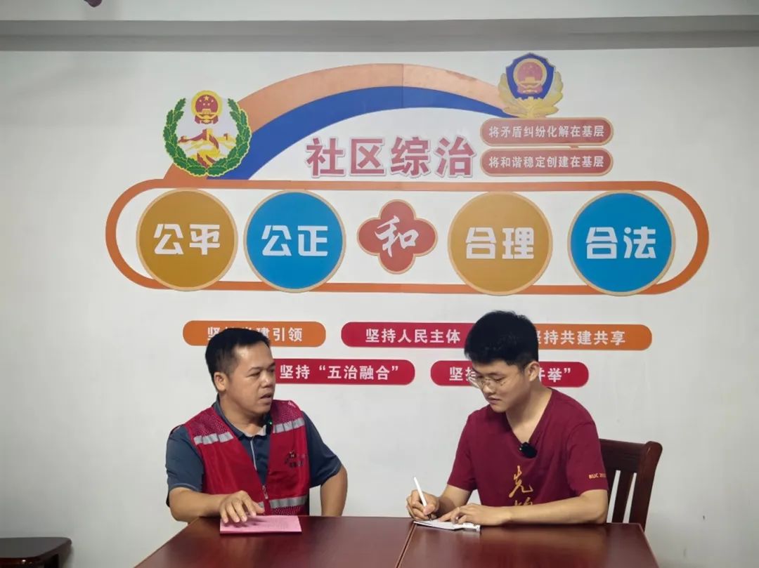 ▲调研团本科生金小旋访谈龙州县龙州镇城南社区驻村第一书记梁景健