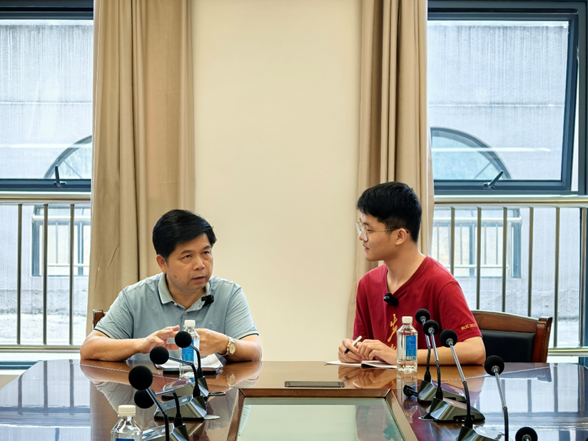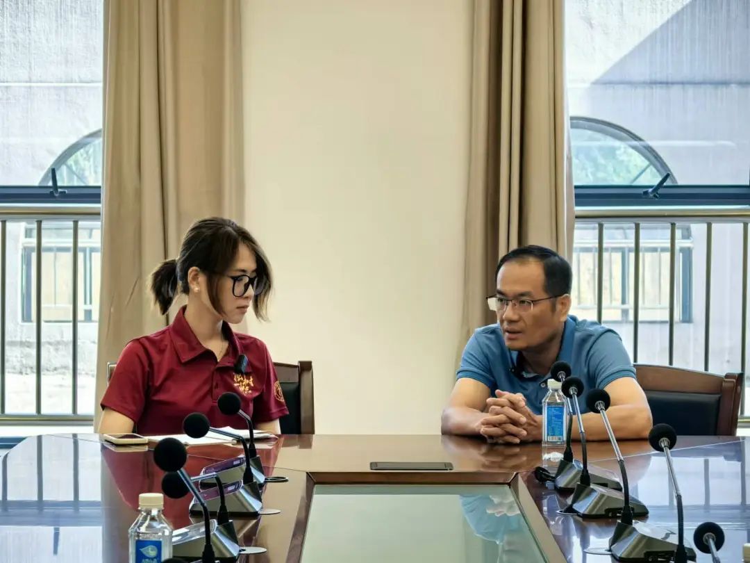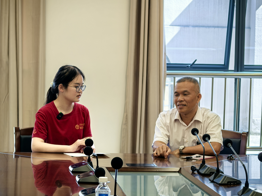 ▲调研团本科生金小旋访谈龙州县政协副主席黄华基