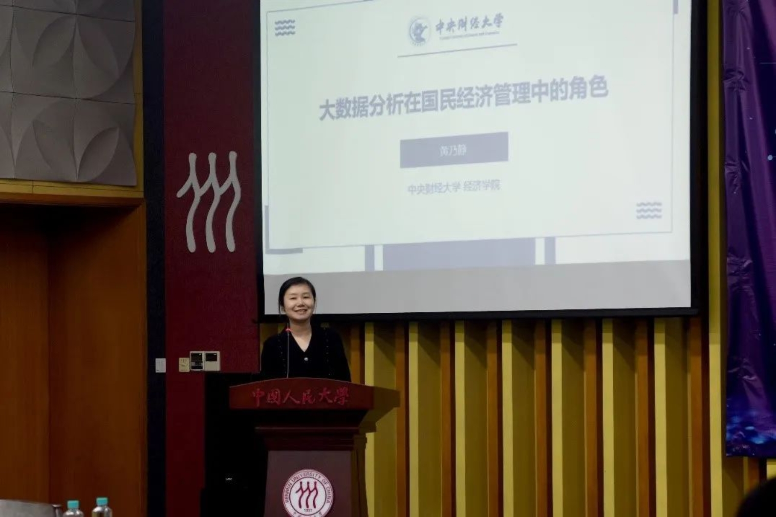 黄乃静作题为“大数据分析在国民经济管理中的角色”的报告。她从学科背景、文献回顾、应用实例三方面对大数据在国民经济分析领域的应用情况进行了介绍,并分享了自己在相关领域的研究成果。