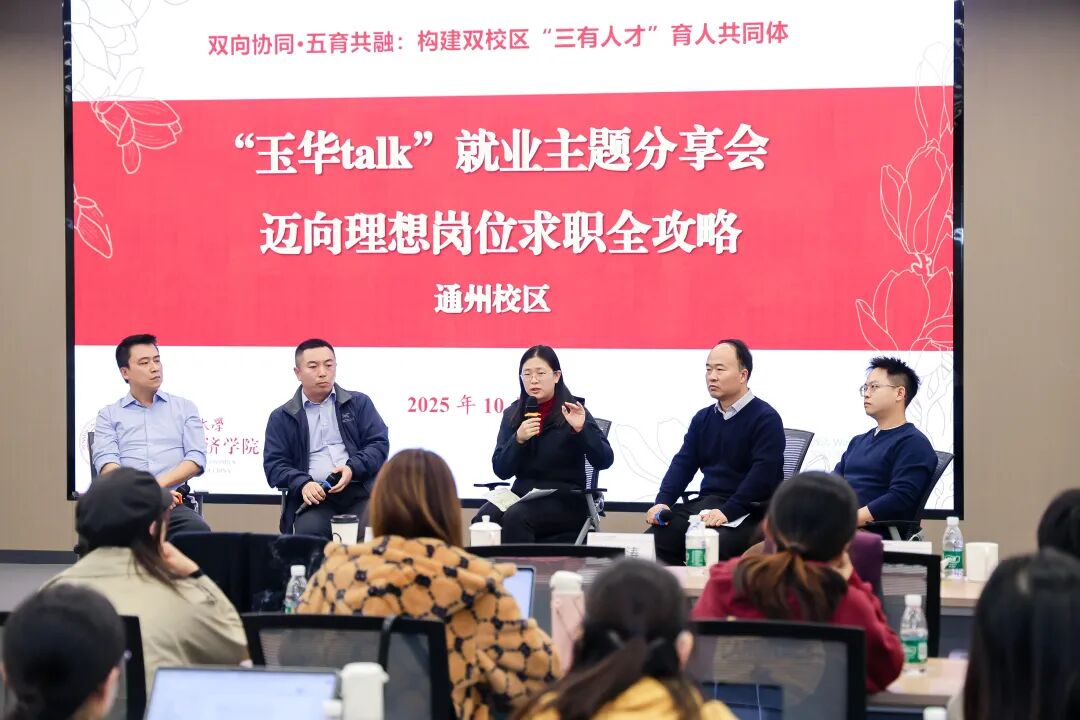 10月26日下午,就业主题分享会“玉华talk:迈向理想岗位求职全攻略”举办,作为“双向协同·五育共融:构建双校区‘三有人才’育人共同体”思政工作精品建设项目的系列活动,此次分享会在通州校区员工事务中心举办,来自中关村校区、通州校区的同学们共同参与。2025/11/06