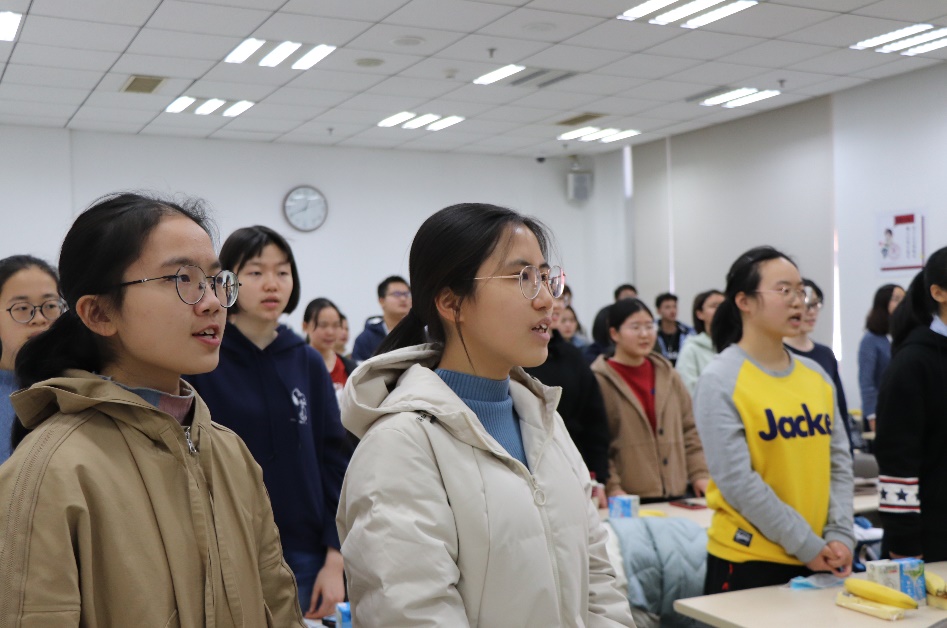 合唱团指挥邹喜同同学首先和大家共同回忆了“一二·九”合唱一个多月的训练历程。成团至今,大家携手共同迈过了许多挑战与艰辛,也收获了满满的友情和成长。