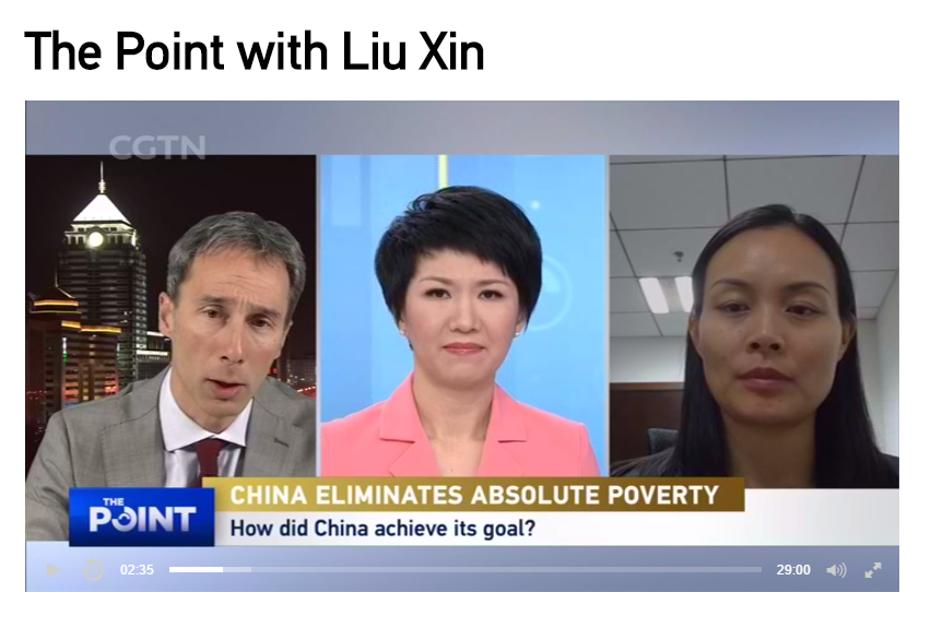 11月26日,yl23455永利谢伦裕副教授就我国脱贫攻坚成就参与中央电视台英语频道the Point with Liu Xin栏目访谈,于当晚9:30在电视台skype连线直播。2020/11/30